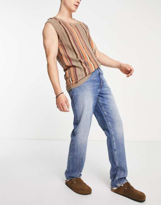 ASOS DESIGN - Jeans met rechte wijde pijpen in mid-wash blauw