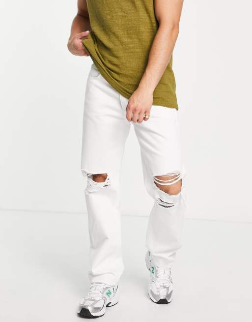 ASOS DESIGN - Jeans met rechte wijde pijpen in wit met kniescheuren