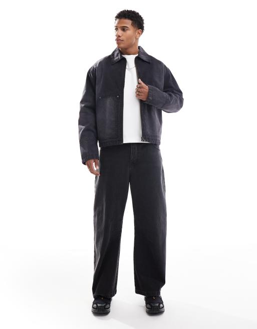 ASOS DESIGN - Jeans met ronde wijde pijpen en naaddetails in zwart met wassing