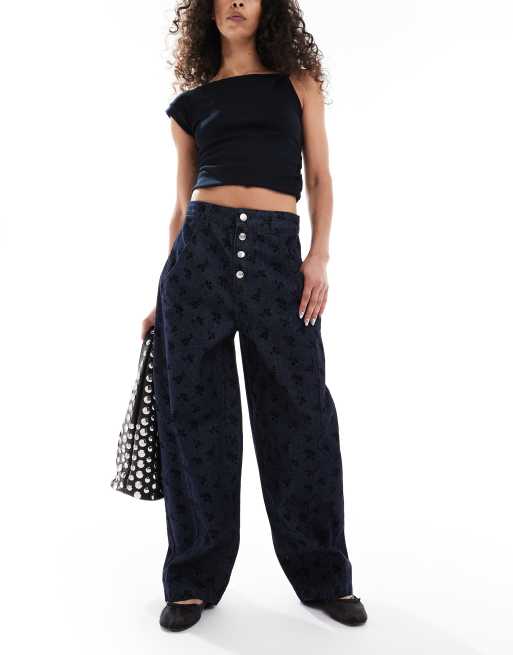 ASOS DESIGN - Jeans met ronde wijde pijpen in geflockte fijne bloemenprint