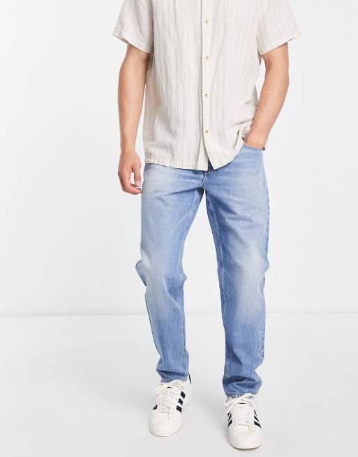 ASOS DESIGN - Jeans met smaltoelopende pijpen in blauw met getinte lichte wassing
