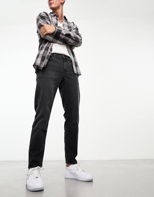 ASOS DESIGN - Jeans met smaltoelopende pijpen in zwart met wassing