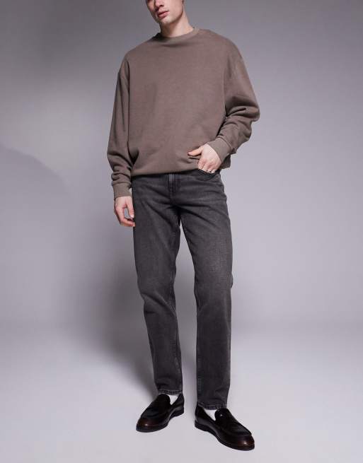 ASOS DESIGN - Jeans met toelopende pasvorm in grijs-zwart met wassing