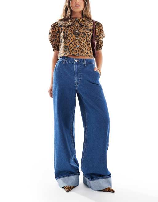 ASOS DESIGN - Jeans met wijde pijpen en hoge taille in middenblauw