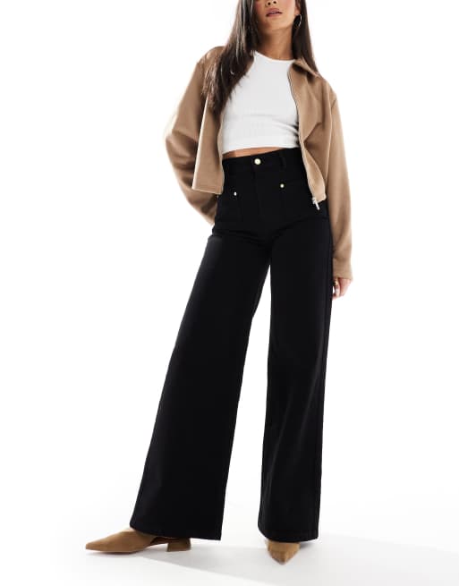 ASOS DESIGN - Jeans met wijde pijpen en zakken aan de voorkant in zwart