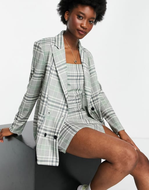 ASOS DESIGN - Jersey double-breasted blazer in preppy ruit