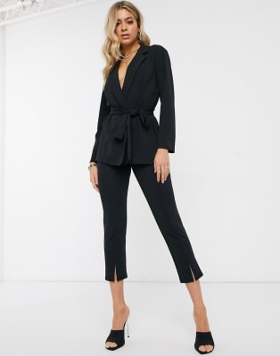 ASOS DESIGN - Jersey kostuum met gestrikte taille in zwart
