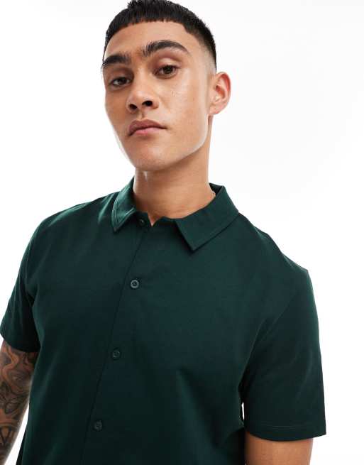 ASOS DESIGN - Jersey overhemd in donkergroen