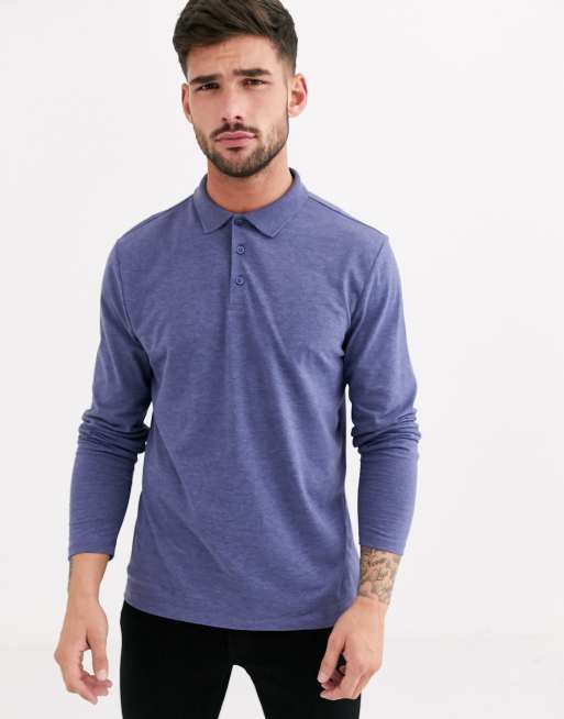 ASOS DESIGN - Jersey polo met lange mouwen in gemêleerd blauw