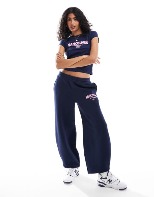 ASOS DESIGN - Joggingbroek met aansluitende boorden en grafische Vancouver-print in marineblauw