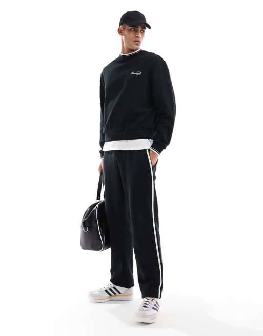 ASOS DESIGN - Joggingbroek met rechte pijpen en zijstrepen met structureer in zwart