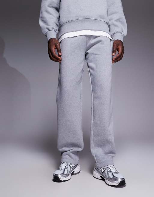 ASOS DESIGN - Joggingbroek met rechte pijpen van premium 400gsm zware stof in gemêleerd grijs