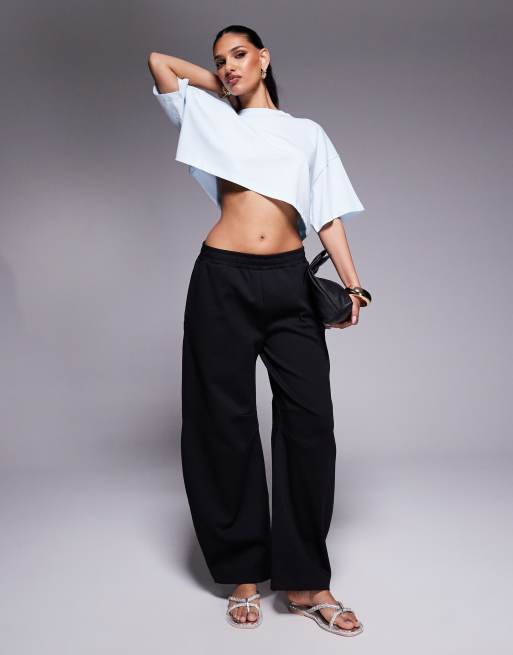 ASOS DESIGN - Joggingbroek met wijde pijpen en interlocknaden in zwart