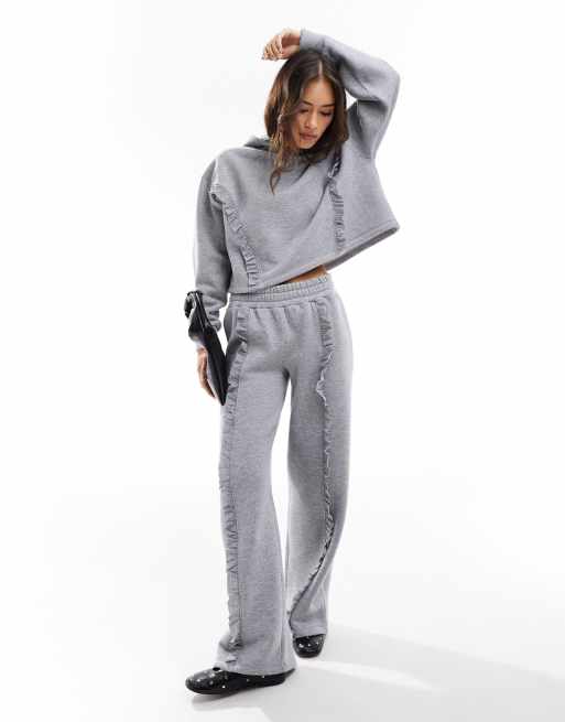 ASOS DESIGN - Joggingbroek met wijde pijpen en ruche details in grijs gemêleerd