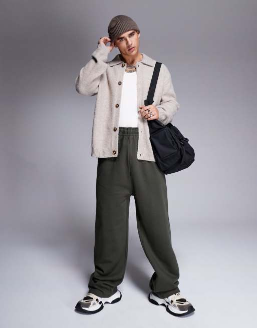 ASOS DESIGN - Joggingbroek met wijde pijpen van premium 400gsm zware stof in kaki