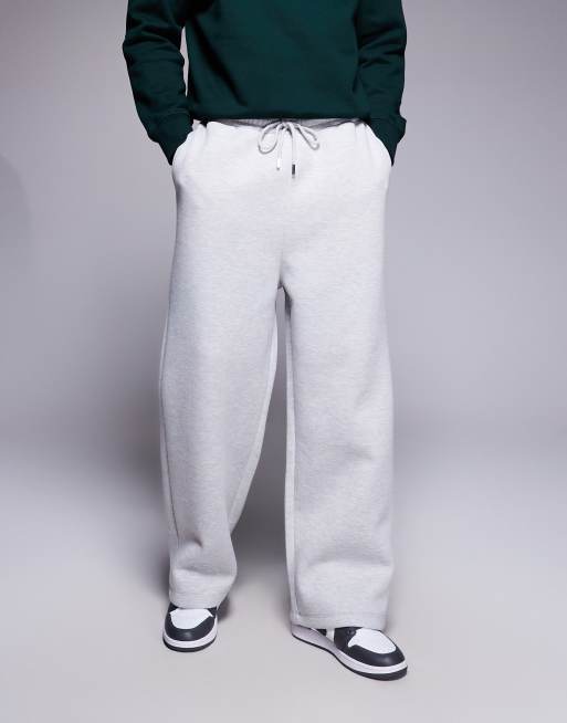 ASOS DESIGN - Joggingbroek van zware scuba-achtige stof met wijde pijpen in gemêleerd grijs