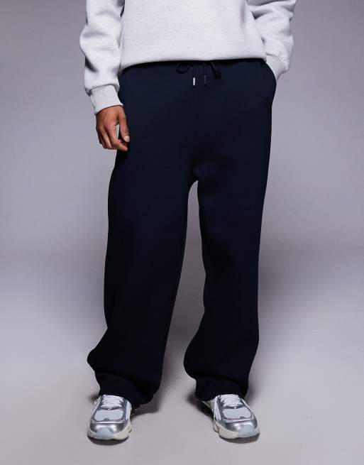ASOS DESIGN - Joggingbroek van zware stof in scubastijl met wijde pijpen in marineblauw