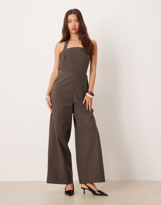 ASOS DESIGN - Jumpsuit met halternek in chocoladebruin