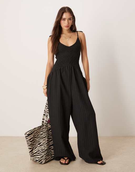 ASOS DESIGN - Jumpsuit met V-hals en verlaagde taille in zwart