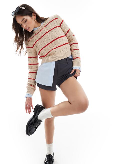 ASOS DESIGN - Kabeltrui met lange mouwen en rode strepen