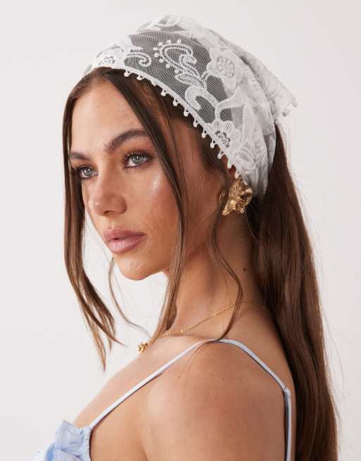 ASOS DESIGN - Kanten hoofddoek in wit met strikdetail