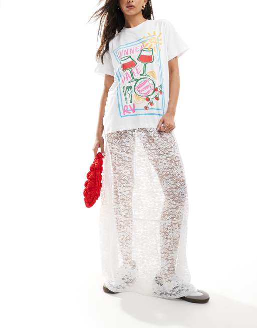 ASOS DESIGN - Kanten maxirok met stroken in wit