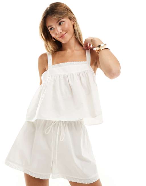 ASOS DESIGN - Katoenen camitop met kanten rand in wit