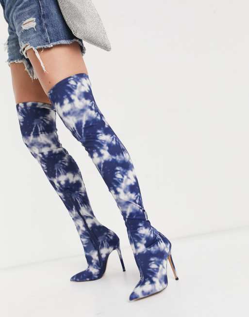 ASOS DESIGN - Kendra - Dijhoge laarzen met stiletto hak in blauwe tie-dye