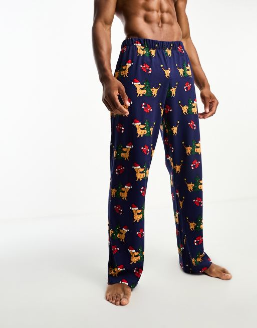 ASOS DESIGN - Kerstmis - Loungebroek met teckelprint in marineblauw