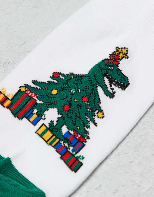 ASOS DESIGN - Kerstsokken met dinosaurusboom in wit