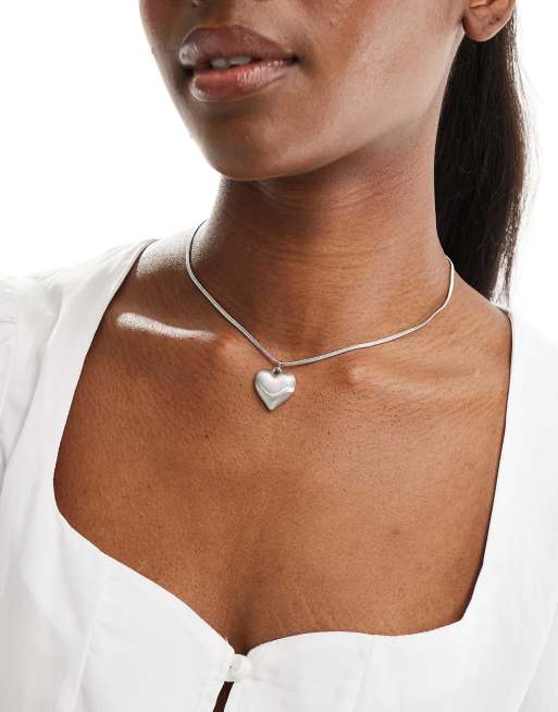 ASOS DESIGN - Ketting met geborsteld harthangertje in zilverkleur