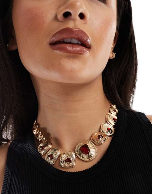 ASOS DESIGN - Ketting met gehamerde muntstukken en details met halfedelstenen-look in goudkleur