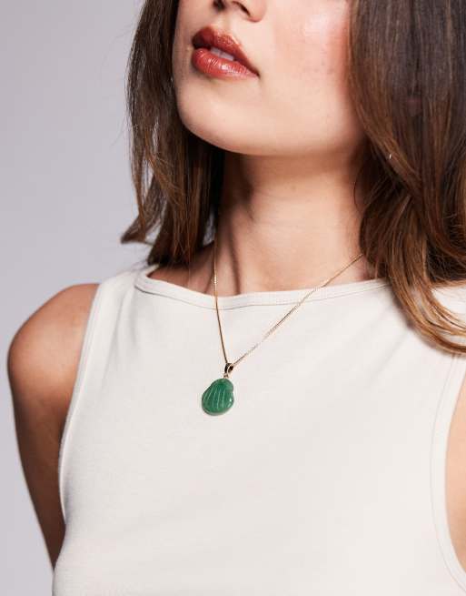 ASOS DESIGN - Ketting met hanger van halfedelsteen in schelpvorm in goud
