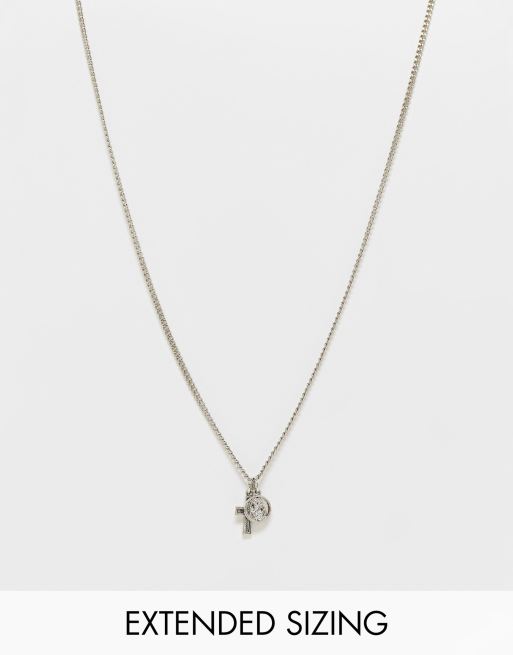 ASOS DESIGN - Ketting met kruishangertje en blauwe steen in zilverkleur
