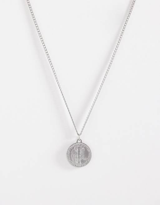 ASOS DESIGN - Ketting van waterbestendig roestvrij staal met dubbelzijdig munthangertje in zilver