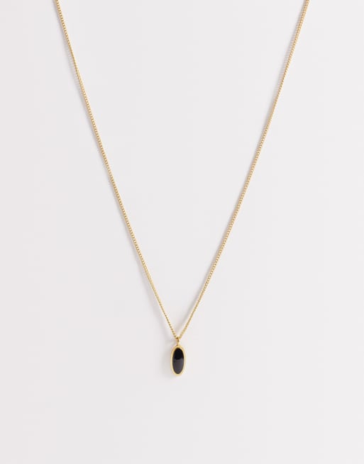 ASOS DESIGN - Ketting van waterbestendig roestvrij staal met ovale zwarte steenhanger in goud