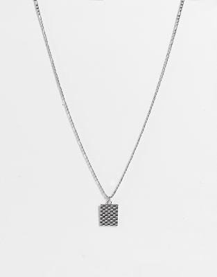 ASOS DESIGN - Ketting van waterbestendig roestvrij staal met vierkant hangertje met reliëf in zilverkleur