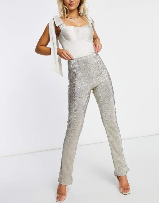ASOS Design - Kick-flare pantalon van sprankelende jersey in zilver