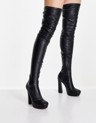 ASOS DESIGN - Kira - Over-de-knie laarzen met plateauzool en hoge hak in zwart