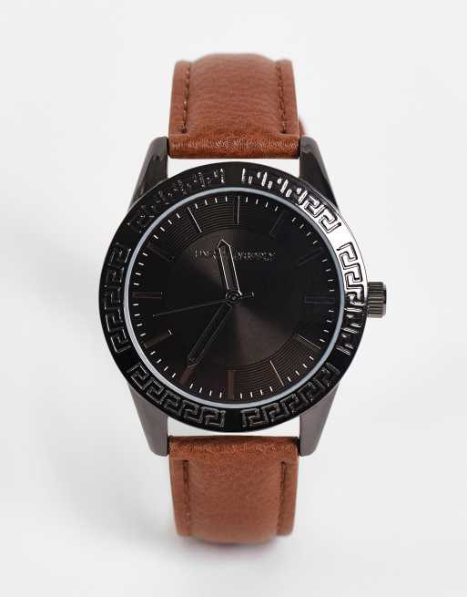 ASOS DESIGN - Klassiek horloge met zwarte wijzerplaat en leren bandje in bruin