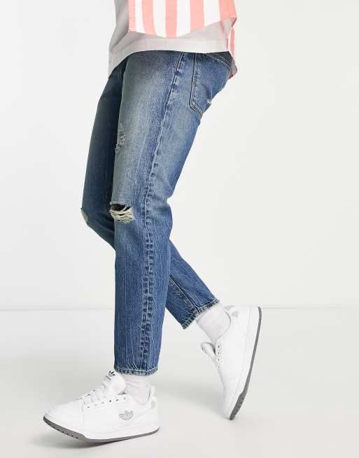 ASOS DESIGN - Klassieke stugge jeans met kniescheuren en getinte wassing