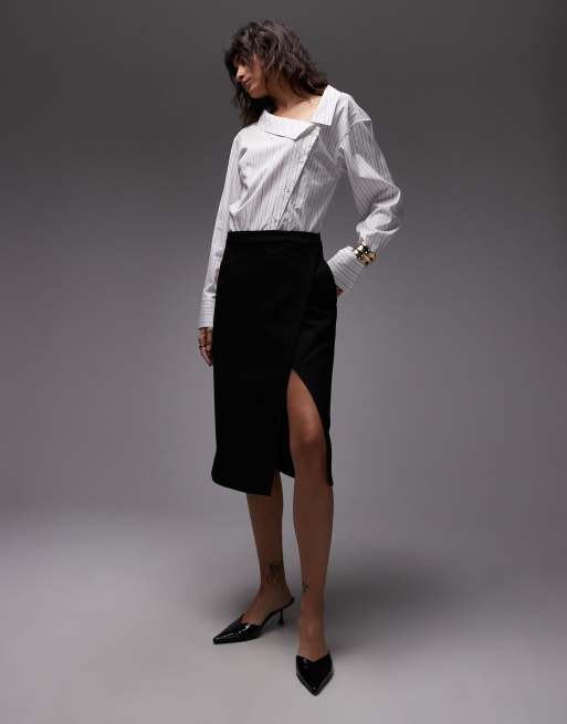 ASOS DESIGN - Knielange wikkelrok in zwart