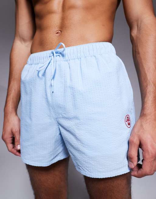 ASOS DESIGN - Kort seersucker zwemshort met borduursel