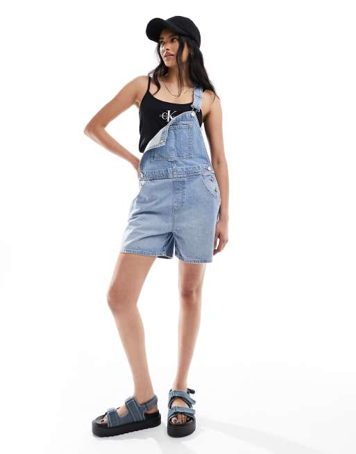 ASOS DESIGN - Korte denim tuinbroek in middenblauw
