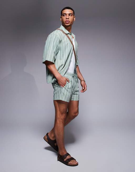 ASOS DESIGN - Korte gestreepte short in groen, deel van co-ord set