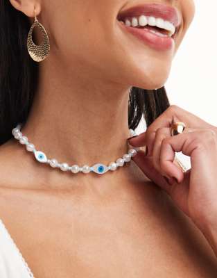 ASOS DESIGN - Korte ketting met imitatieparels en oog-ontwerp