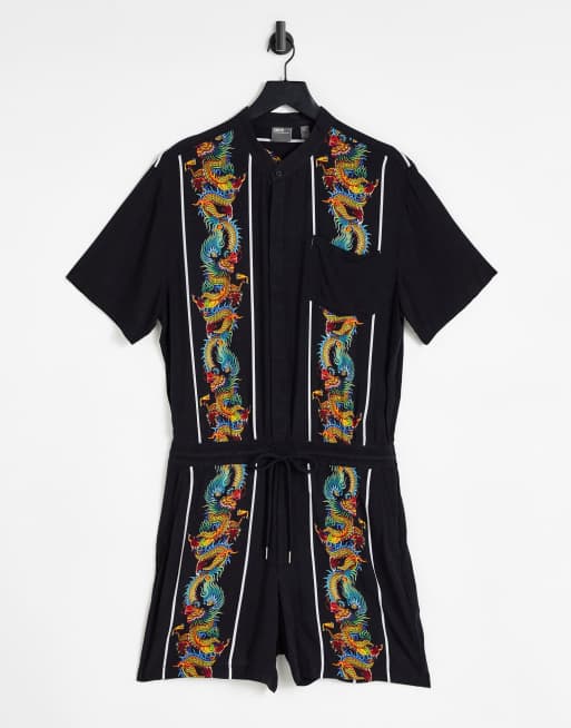 ASOS DESIGN - Korte overall met drakenprint
