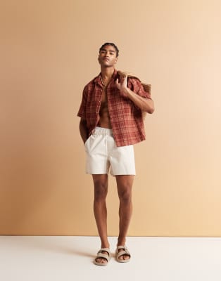 ASOS DESIGN - Korte short van linnenmix met elastische taille in stone