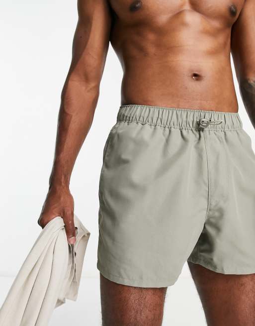 ASOS DESIGN - Korte zwemshort met trekkoord op de taille in lichtkaki