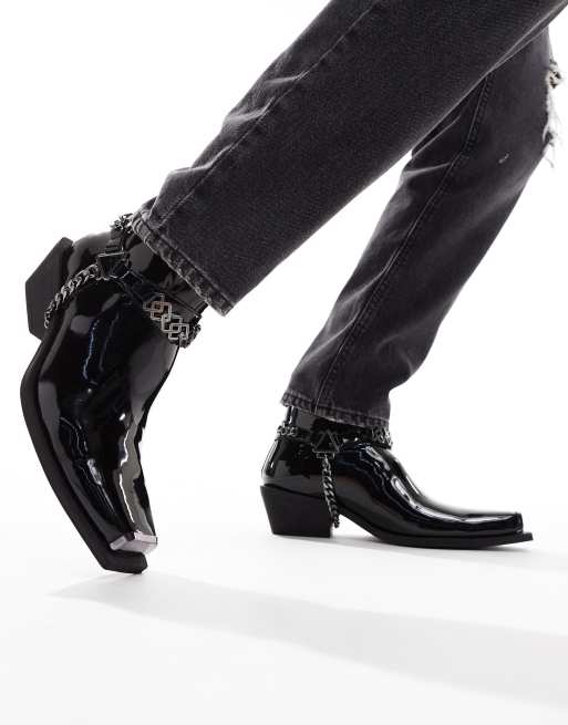 ASOS DESIGN - Laarzen met Cubaanse hak van zwart imitatieleer met kettingdetails